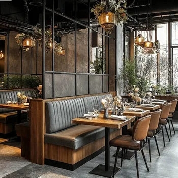 High-End Custom Restaurant Chairs and Tables Set China Factory Leather Booth Seat Sofa Cafe Coffee Shop Hotel Dining Room Table