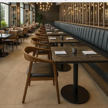 High-End Custom Restaurant Chairs and Tables Set China Factory Leather Booth Seat Sofa Cafe Coffee Shop Hotel Dining Room Table