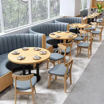 Restaurant Fast Food Booth Seat Wooden Table and Chair Set Booth Bench Couch Sofa Coffee Shop Furniture Set