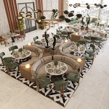 High-End Custom Restaurant Chairs and Tables Set China Factory Leather Booth Seat Sofa Cafe Coffee Shop Hotel Dining Room Table